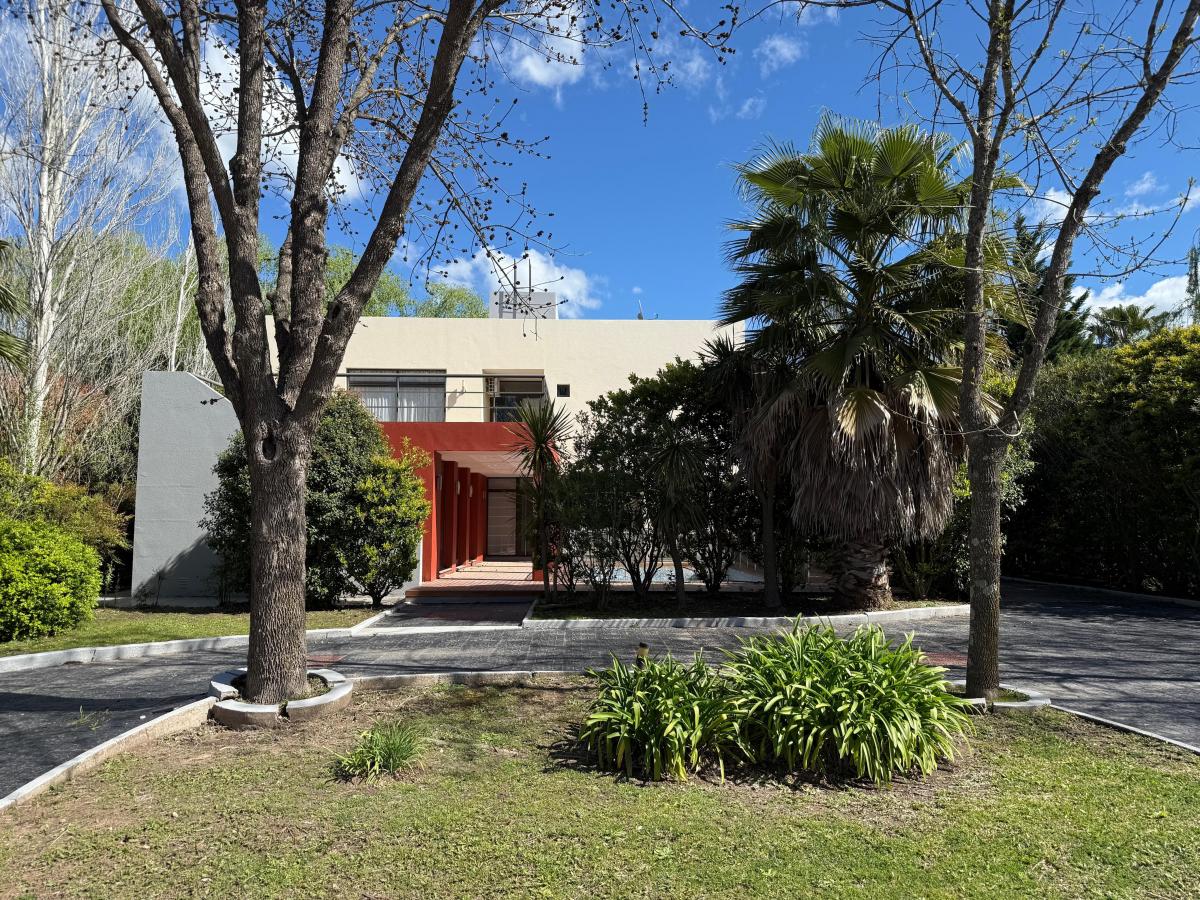 Casa estilo campo. Sobre un lote de 2700m2 se encuentra construida esta casa de 374m2 totales. Cuenta con cuatro dormitorios, uno de ellos en suite con vestidor y un segundo baño para el resto de los dormitorios. Amplia cocina integrada al living comedor, lavadero, quincho cubierto con parrilla. En planta alta cuenta con playroom o dormitorio de visitas y amplia terraza con vista al parque. Piscina en venecita con caldera para climatización, pérgola, garage para dos vehículos o para salón de juegos.